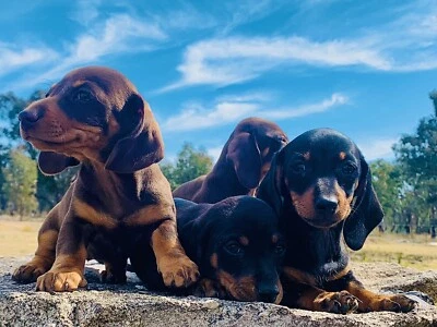 26 boosted adverts. Miniature dachshund puppies born 31 08 2020 introducing our 4 beautiful babies 1 dapple male sold 1 dapple female sold 1 choc tan female sold 1 cream male please text or gumtree message for more information and for pictures of a particular puppy we own both mum and dad so you re welcome to meet both they are both gorgeous and are the sweetest little things puppies raised with young kids. Ready to leave ready to leave. Mum and dad can both be seen and are our family pets.