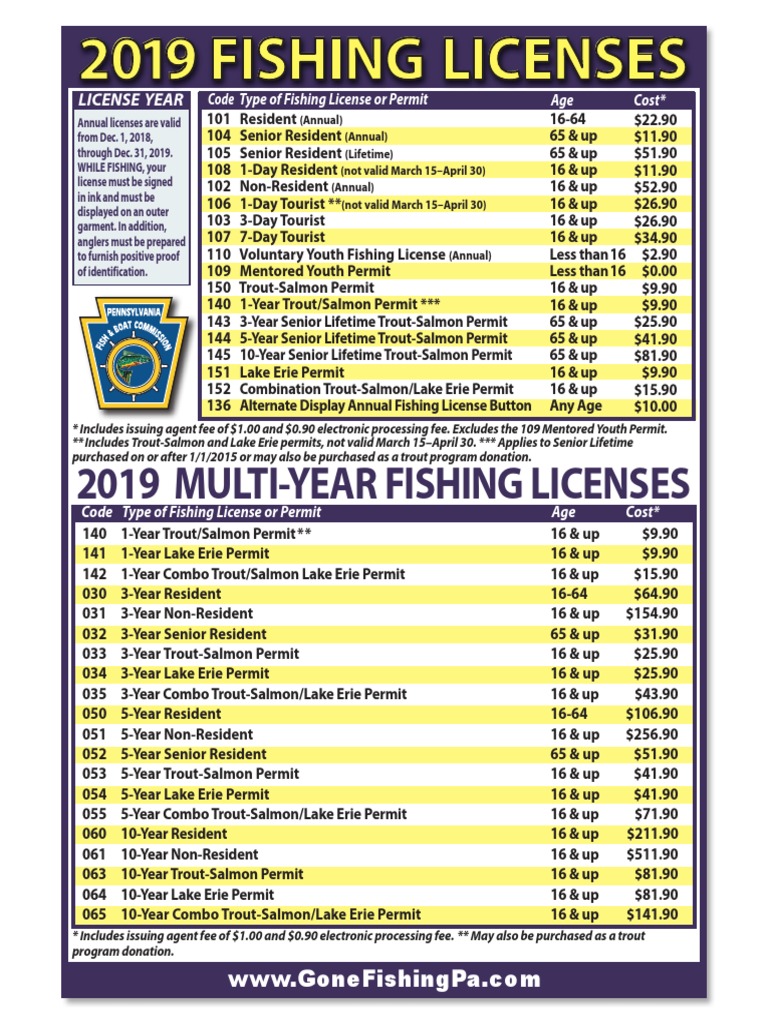 Fishing License Pa Cost 2019