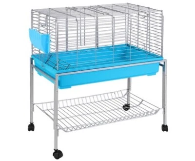 Two tier pet cage with bowls water bottle small animal treats litter tray and cage and hutch insect spray. Instructions for folding down and building included. Very light surface rust on some parts but doesn t affect functionality at all. Dog pet fabric collapsible play pen with zipped bag great for travel can be used indoors or outdoors approx size 36 diam.